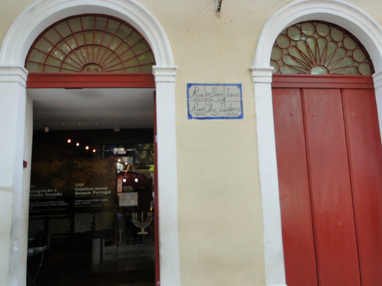 Entrando para o bairro do Recife Antigo vá até a Rua dos Judeus (Rua do Bom Jesus) - normalmente nos finais de semana há feirinha de artesanato, mas um local muito interessante está abrigado lá: a 1ª (primeira) Sinagoga do Brasil - Sinagoga Kahal Zur Israel (www.arquivojudaicope.org.br). Em razão da invasão holandesa, com o governo de Maurício de Nassau, houve maior tolerância religiosa, permitindo a prática de diversos cultos, inclusive indígenas e africanos.