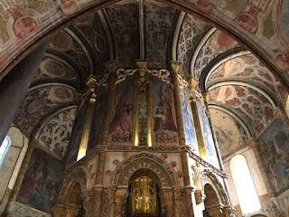 Por dentro do Convento é possível visualizar azulejos portugueses, mas a parte mais bonita, para mim, é a Igreja Manuelina. Estas Igrejas antigas são ricas em simbolismos, demonstrações de poder e riqueza. Embora não esteja tão bem conservada, por questões estruturais que se seguiram desde a construção, é possível ver várias pinturas (afrescos) e uma estrutura diferente das demais Igrejas.