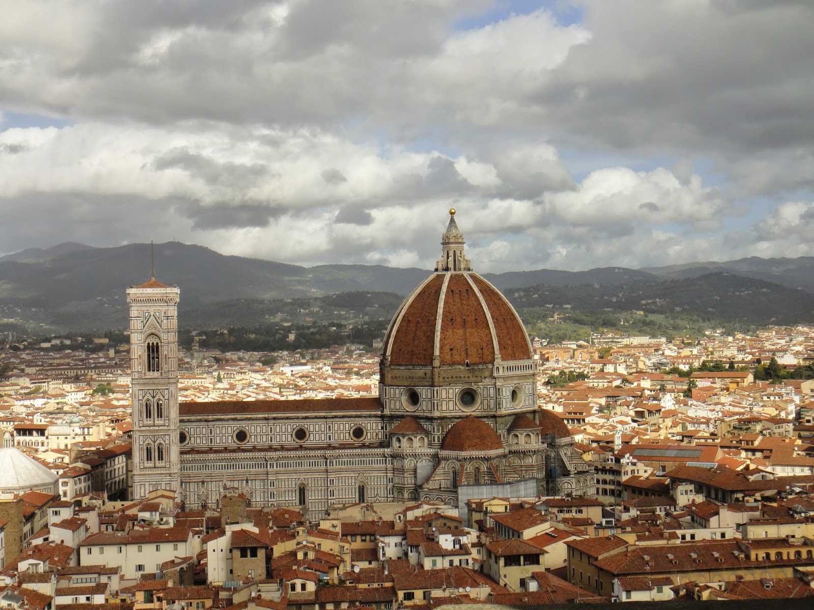 Pensar em Florença é visualizar o grande Duomo – a Basílica di Santa Maria del Fiore (www.duomofirenze.it) que se destaca imponente em Florença dentre as ruas estreitas e outras grandes construções. Junto a ela ficam também o Campanário e o Batistério, formando na praça as edificações mais bonitas da Toscana.