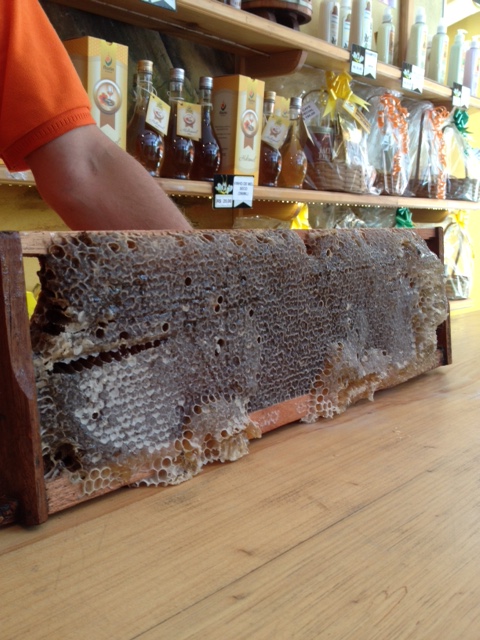 No local há comercialização de mel de várias floradas (café e macadâmia são os meus prediletos), além do favo de mel e outros produtos derivados (cremes, sabonetes).