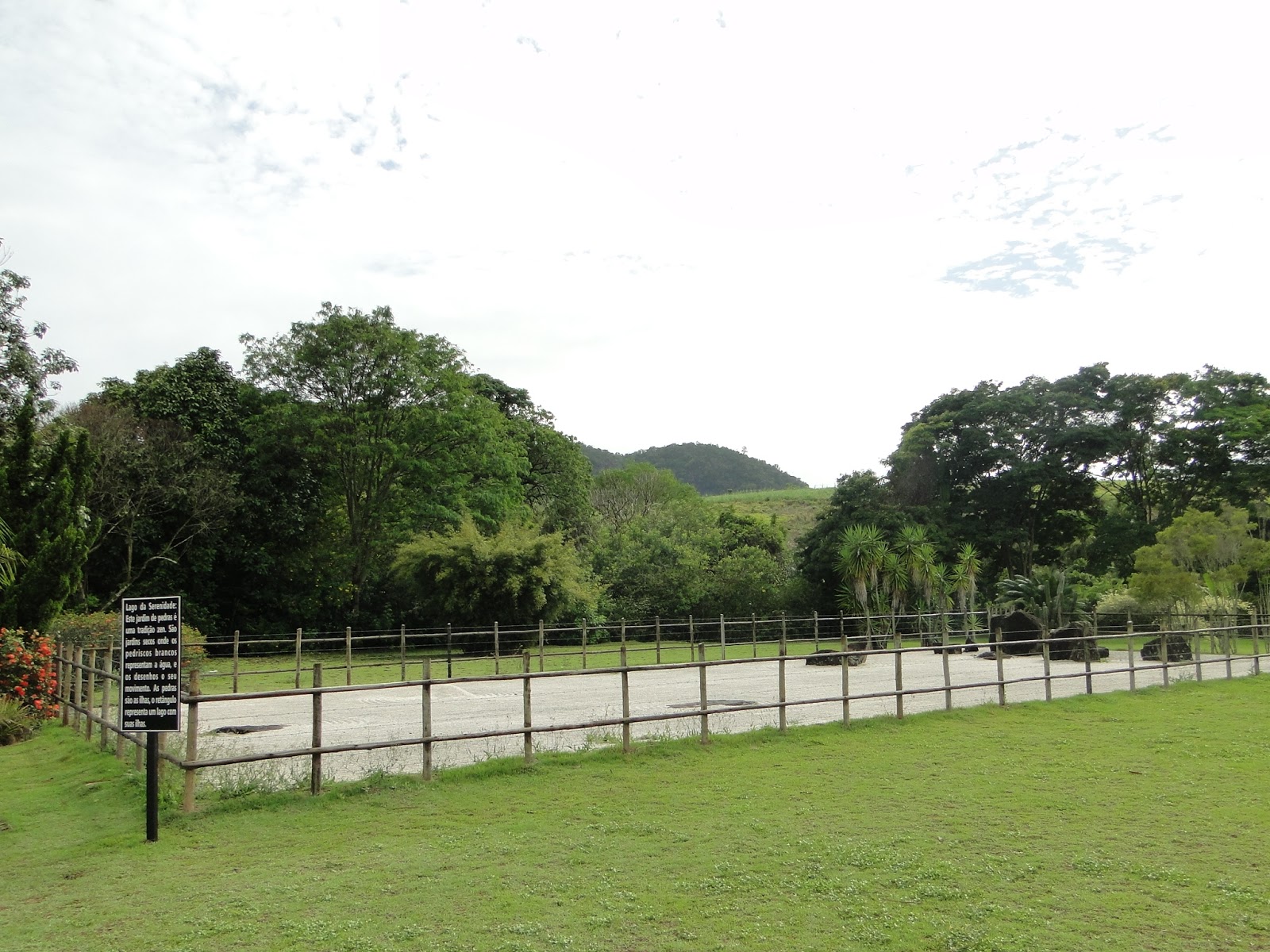O lago é denominado "Lago da Serenidade" - é um jardim de pedras tradicional zen, um jardim seco, onde as pedras brancas representam a água e os desenhos, seu movimento. Por sua vez, as pedras grandes representam ilhas.