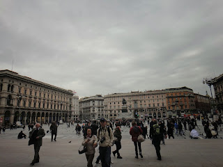 Na praça em frente (Praça Duomo) ficam várias pessoas insistindo (muito) para que você alimente os pombos... em resumo: não conseguia explicar (vários pombos por cima da cabeça) e quis logo sair dali, pois pombos não me agradam, e ficar rodeada por eles menos ainda.