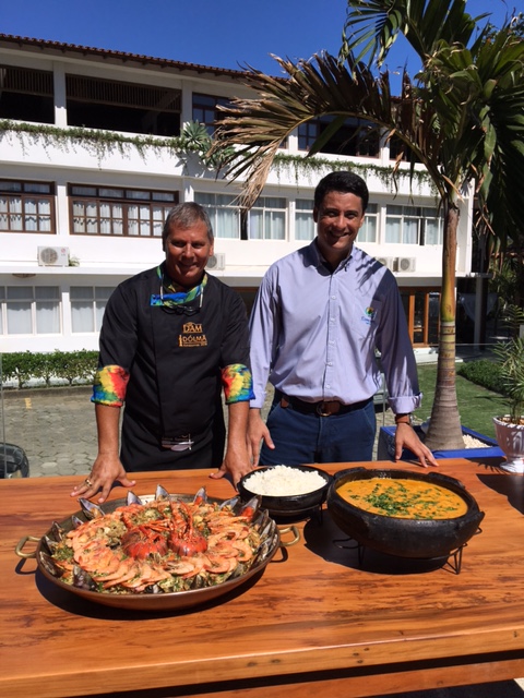 A primeira dica é o Restaurante do Gilson. O Chefe Gilson Surrage é o responsável pela cozinha movida a frutos do mar há 23 anos, e nos serviu, no Hotel Espadarte, paella e bobó de camarão, que fez todos os participantes repetirem (mais de uma vez) o prato.