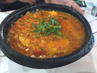 Para finalizar este tour gastronômico, o Restaurante Gaeta nos "brindou" com a moqueca capixaba. O prato mais emblemático do Estado é deliciosamente acompanhado de arroz, pirão e moqueca de banana (amo!!!). O auge foi ser recebida pelo Senhor Nhozinho, moquequeiro, e responsável pelo tradicional restaurante. Quer a receita? A Viajante Comum te dá! O blog Viagem Massa também conta a experiência.