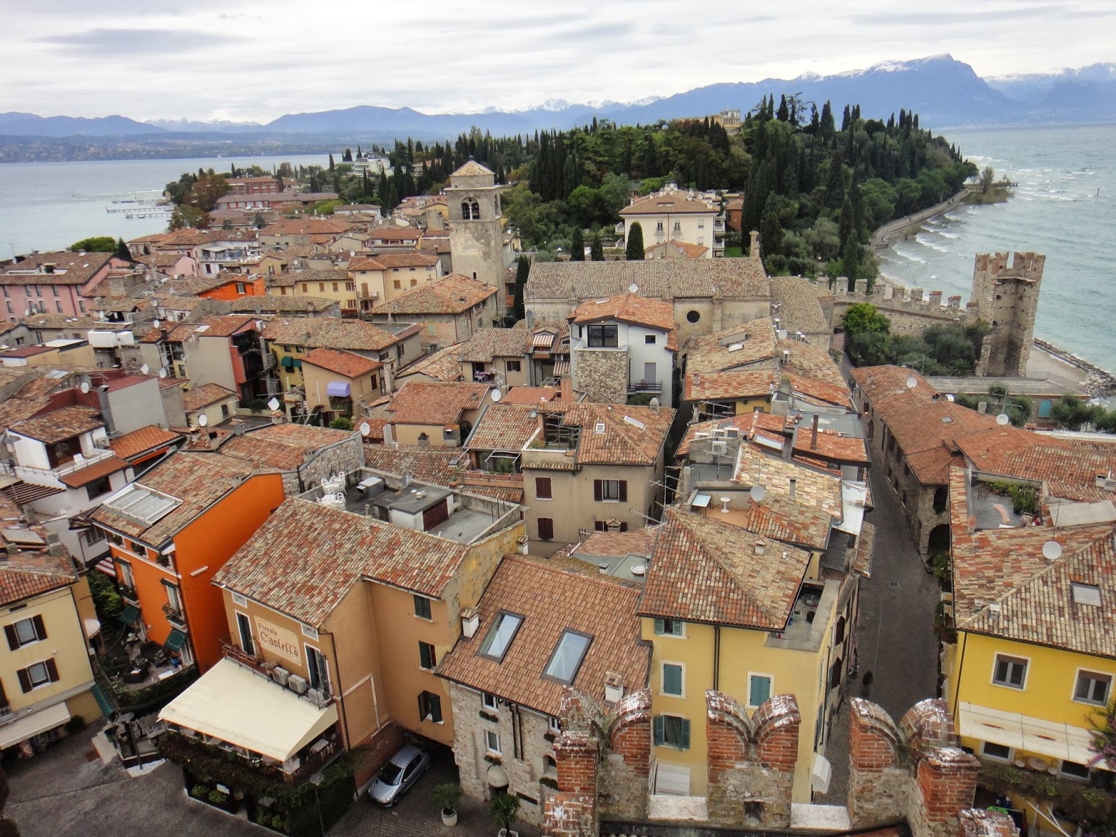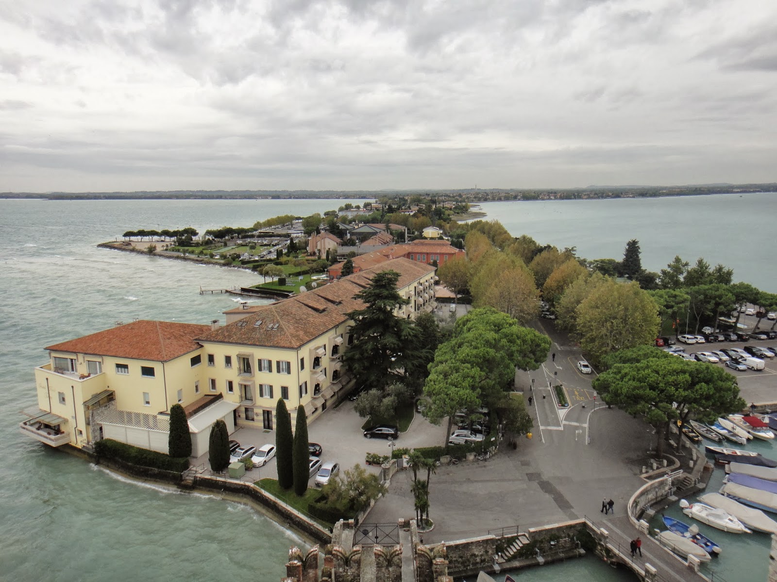 Sirmione é o balneário mais encantador do lago, e a estreita península se estende por 4 km deste. Ao sair da estrada principal, você logo verá casas e hotéis lindos (fiquei pensando como deve ficar cheio no verão!), e é impossível não chegar à beira do lago e visualizar a bela paisagem.