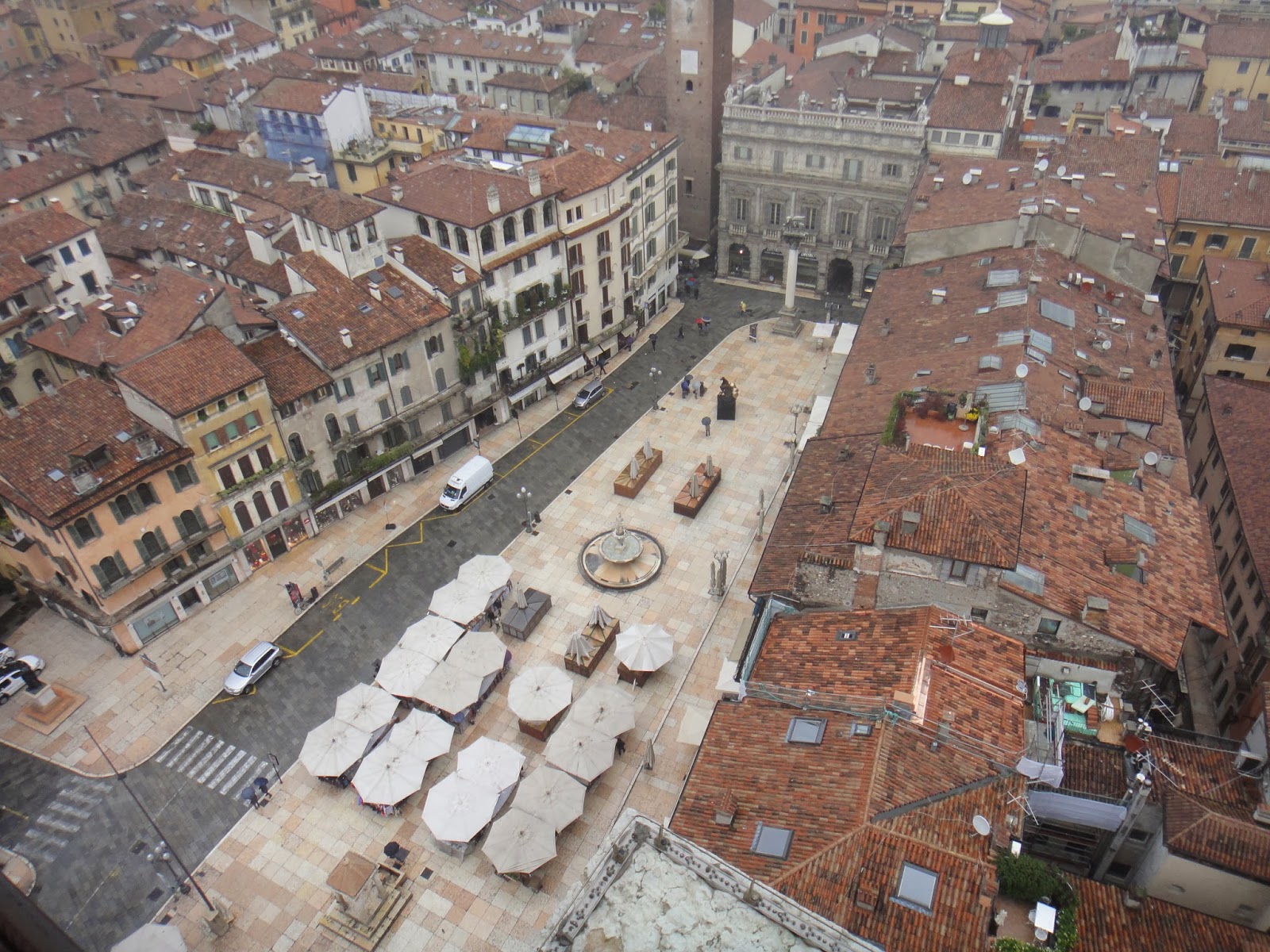 Saindo de lá, passeie pela Praça "Piazza Erbe", que fica ao lado da Piazza Dei Signori" e aproveite para apreciar a vista da Torre dei Lamberti. A torre medieval do século XII é a torre mais alta de Verona e possui 84 metros. Até o ponto mais alto você subirá 368 degraus (valor: 6 euros), ou você poderá optar por subir uma parte de elevador - observe o horário em que os sinos badalam (fique ou saia correndo!) - são 03 sinos. Aberto todos os dias da semana das 8:30 às 19:30 horas.